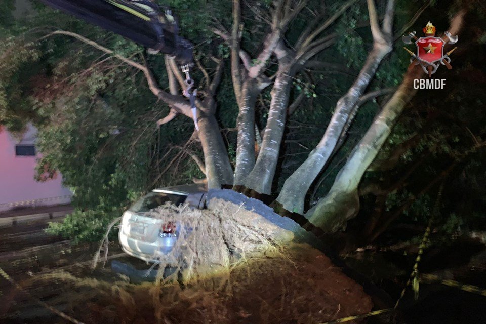Chuvas intensas provocam quedas de árvores e danificam carros no DF 5