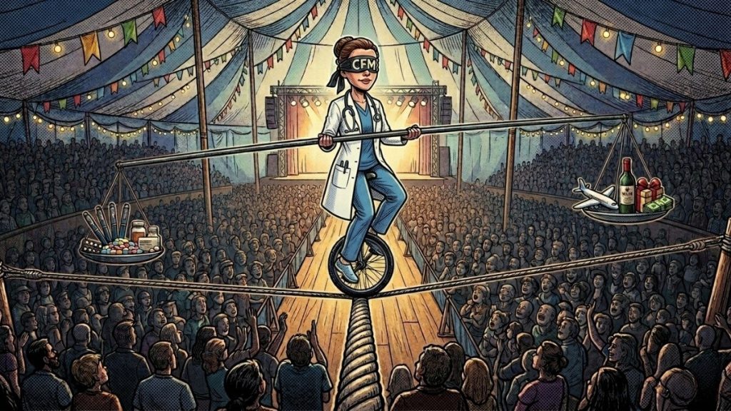 Desde março de 2025, o Conselho Federal de Medicina (CFM) supostamente exige que todos os médicos brasileiros declarem, na plataforma CRM Virtual, eventuais conflitos de interesse relacionados à indústria farmacêutica. A exigência foi publicada no Diário Oficial a partir da Resolução 2386/24 e prevê que os médicos podem enfrentar processos disciplinares e até ter o registro cassado caso não deem transparência às contratações, como palestras, pesquisas ou consultorias, que tenham prestado às farmacêuticas.