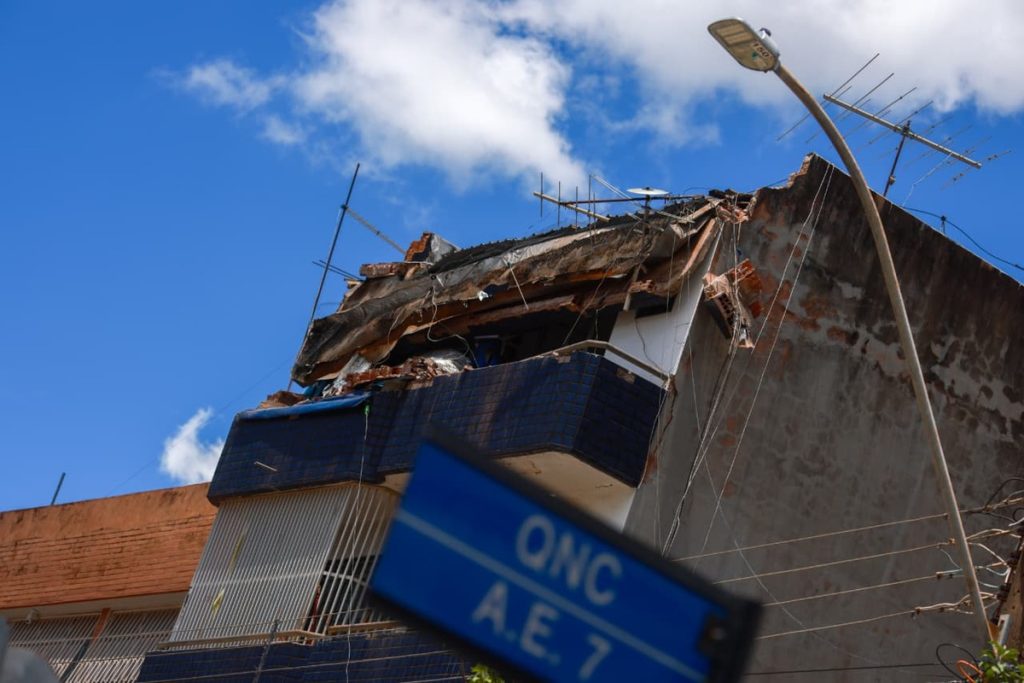Defesa Civil interdita prédio em Taguatinga após queda de marquise. Veja vídeo
