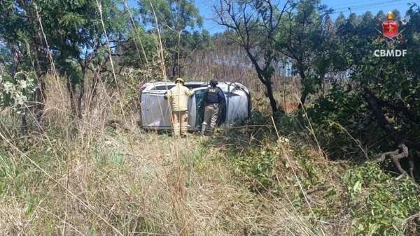 Segundo o Corpo de Bombeiros do Distrito Federal (CBMDF), as duas vítimas estavam dentro do carro, que saiu da pista e capotou às margens da via.