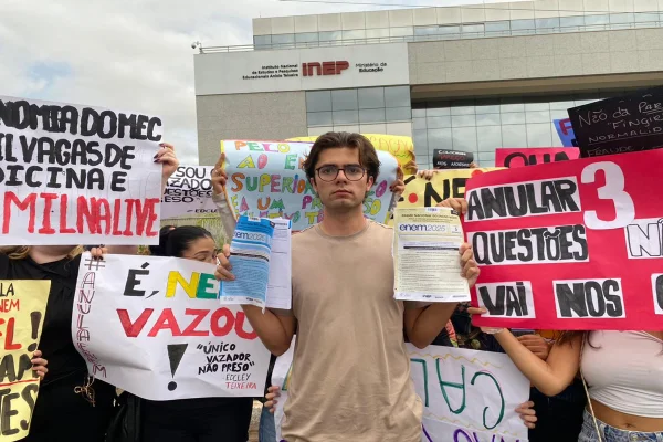 Entre os presentes estava Natália Souza, 22 anos, que estuda para vestibulares há quatro anos. Para ela, o vazamento colocou em risco todo um processo seletivo e torna impossível garantir que não haja prejuízo aos candidatos.“Só o estudante sabe o peso de estudar 6, 8, 12 horas por dia. Eu comecei a tomar medicamentos psiquiátricos para ansiedade”, declarou.