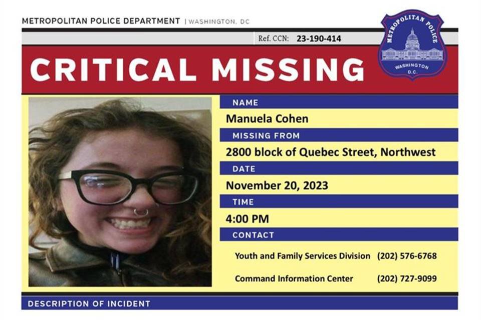 Há 15 dias, uma jornada de preocupação começou para a família Cohen. Em 20 de novembro último, a brasiliense Manuela Keller Cohen, 17 anos, saiu de casa, em Washington (Estados Unidos), às 16h, sem celular ou chaves, e avisou aos pais que voltaria duas horas depois. Isso não aconteceu e, agora, a jovem é considerada desaparecida.