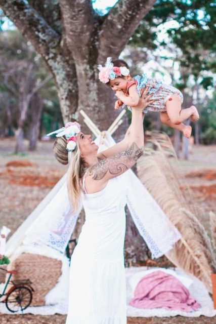 Talita ao lado de sua filha, Íris. Ela teve uma trombose femural durante a gestação