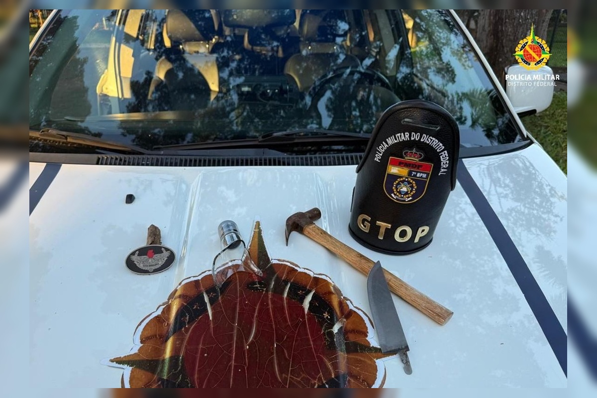 Autor, considerado de alta periculosidade, foi detido pela PMDF com faca, martelo e garrafa quebrada