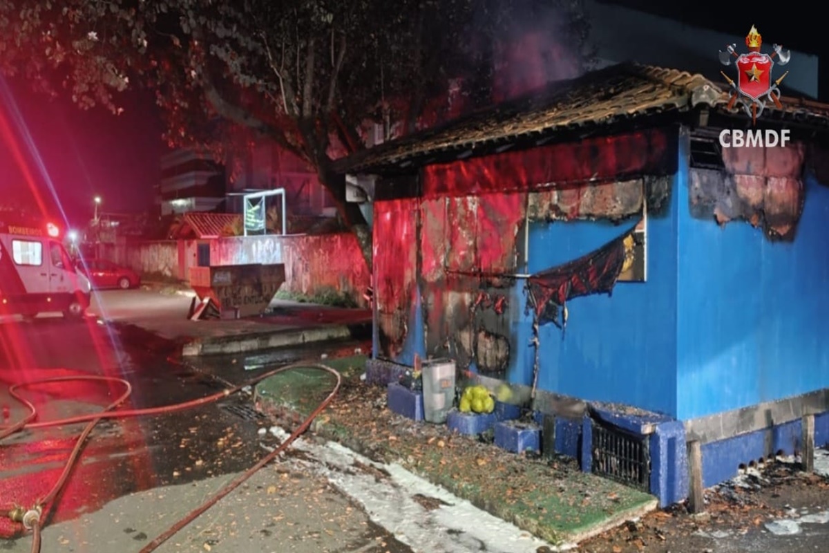 Fogo começou na madrugada desta sexta-feira (13/2); CBMDF controlou as chamas e retirou botijões de gás do local
