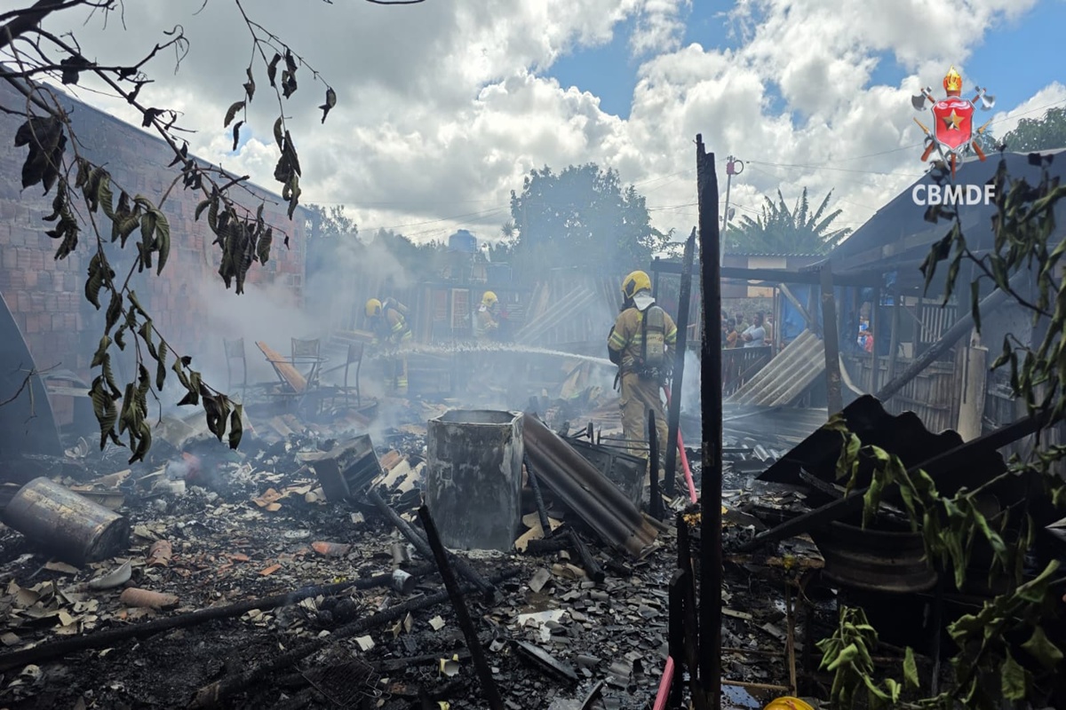 Incêndio deixa casa totalmente destruída em acampamento no DF. Veja vídeo