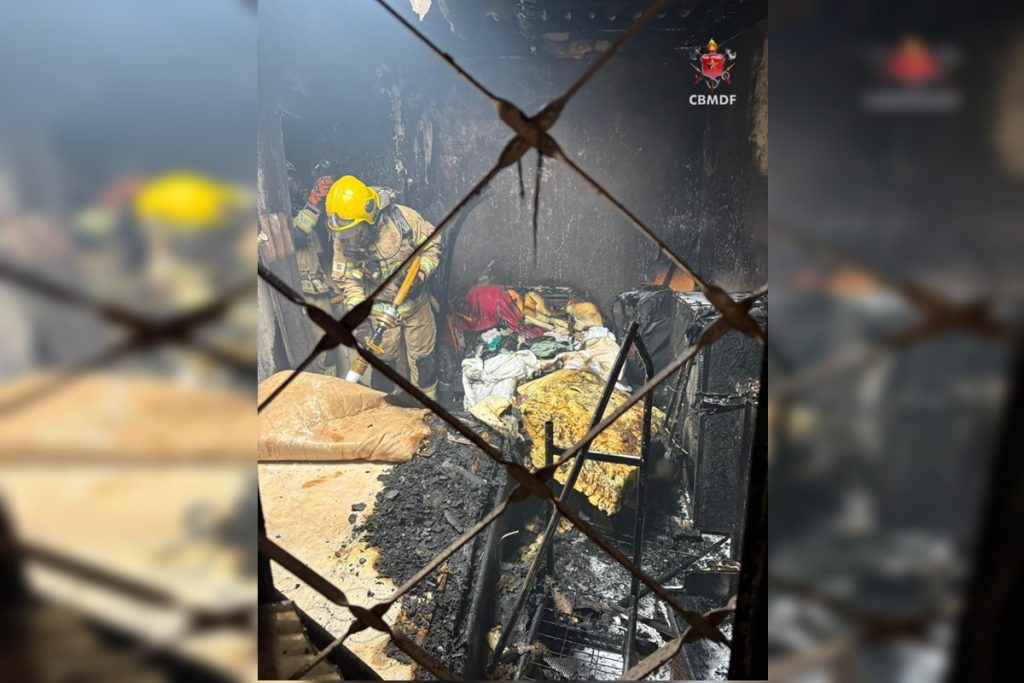 Incêndio destrói quarto de casa no DF e mobiliza bombeiros. Veja vídeo