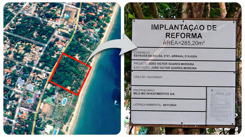 A primeira vistoria do Instituto, em 26 de novembro de 2025, já havia constatado a obra irregular, com duas edificações e uma piscina em andamento, mas a falta de dados sobre o proprietário impediu o embargo. O órgão afirma que solicitou informações à Prefeitura de Porto Seguro, mas “não houve resposta, impossibilitando a adoção das medidas de fiscalização”.