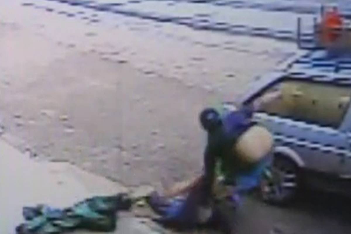 As imagens mostram ainda o jovem largado na rua desacordado. Alguns segundos depois, outros pedestres se aproximam do jovem e tentam fazer o socorro.