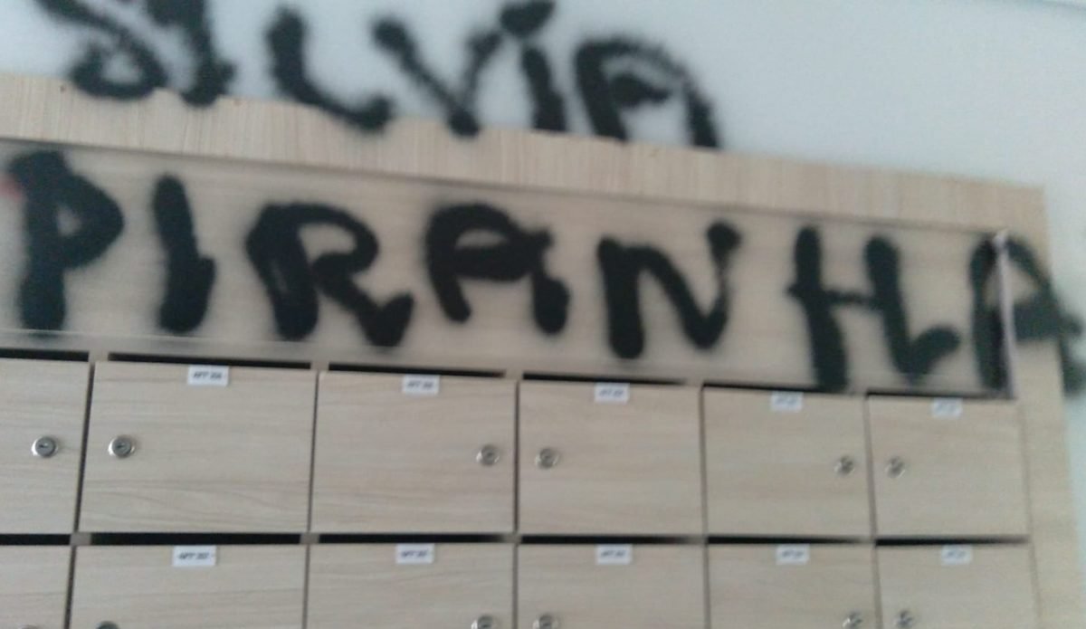 A situação, no entanto, piorou nos últimos dois meses. “Acho que, na segunda-feira [29/1] ou no domingo [28/1], ele fez uma pichação grande, xingando-me de ‘piranha’, próximo aos escaninhos [do prédio]. Ele colocou preservativos, inclusive aparentemente usados, e comida estragada. Ele serrou o armário [do correio], além de ter cortado a porta [dele] em duas partes”, detalhou a administradora do edifício.