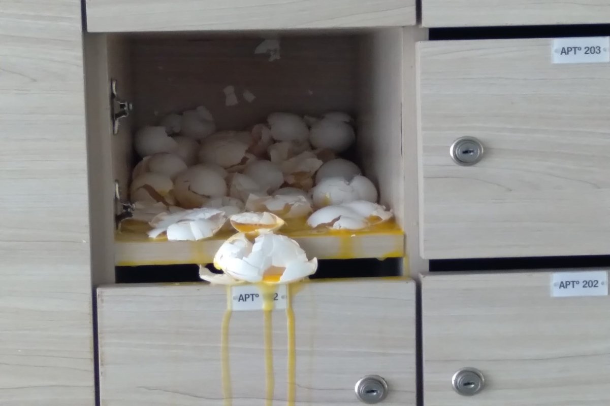A situação, no entanto, piorou nos últimos dois meses. “Acho que, na segunda-feira [29/1] ou no domingo [28/1], ele fez uma pichação grande, xingando-me de ‘piranha’ próximo aos escaninhos [do prédio]. Ele colocou preservativos, inclusive aparentemente usados, e comida estragada. Ele serrou o armário [do correio], além de ter cortado a porta [dele] em duas partes”, detalhou a administradora do edifício.