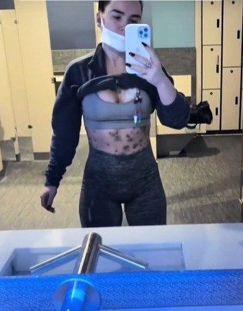No dia seguinte, a americana acordou com enjoos e febre. Dois dias depois, percebeu o aparecimento de lesões extremamente doloridas no corpo.