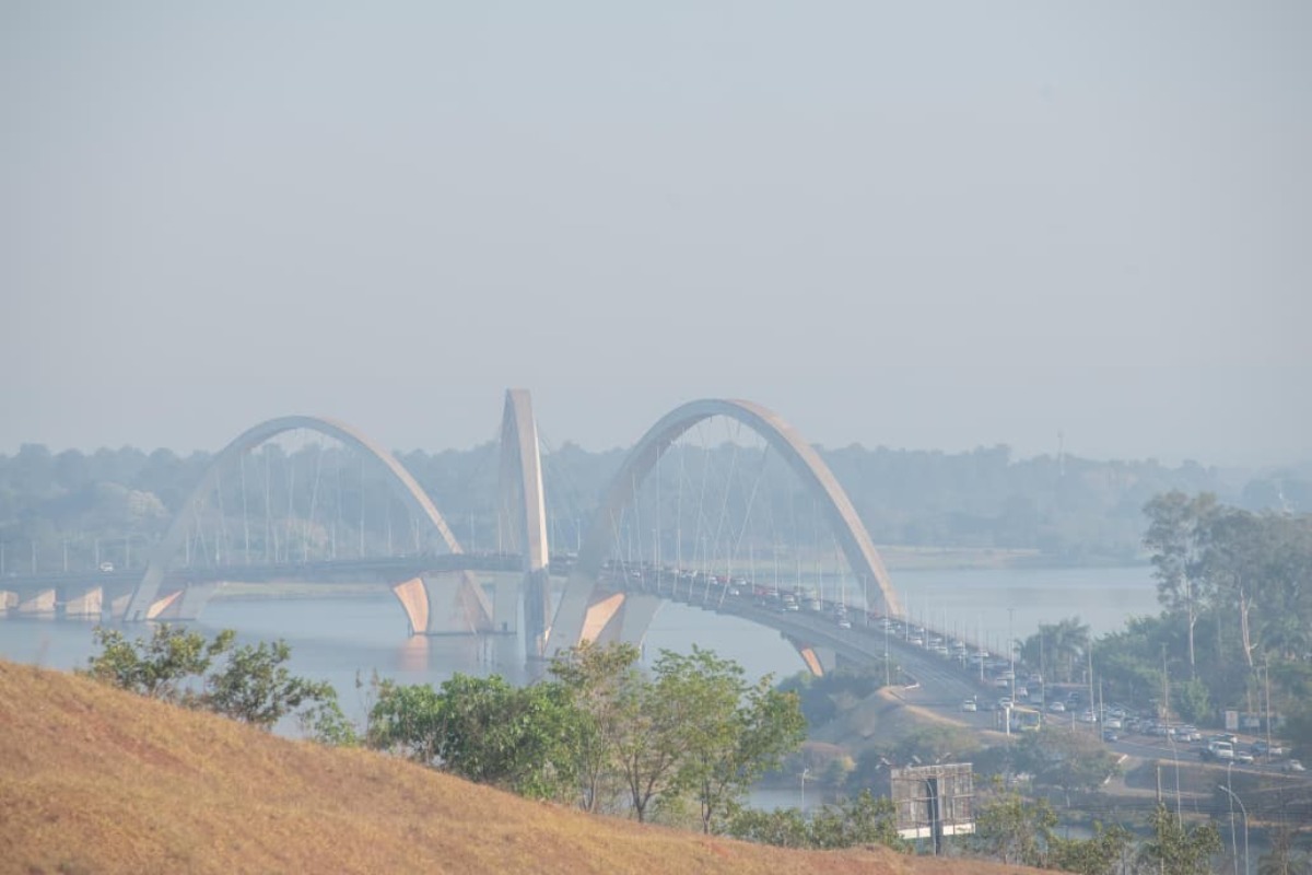 Neblina de poeira encobre Brasília nesta manhã, reduzindo a visibilidade e alterando a paisagem da capital. O fenômeno é resultado do tempo seco e ventos fortes típicos deste período.