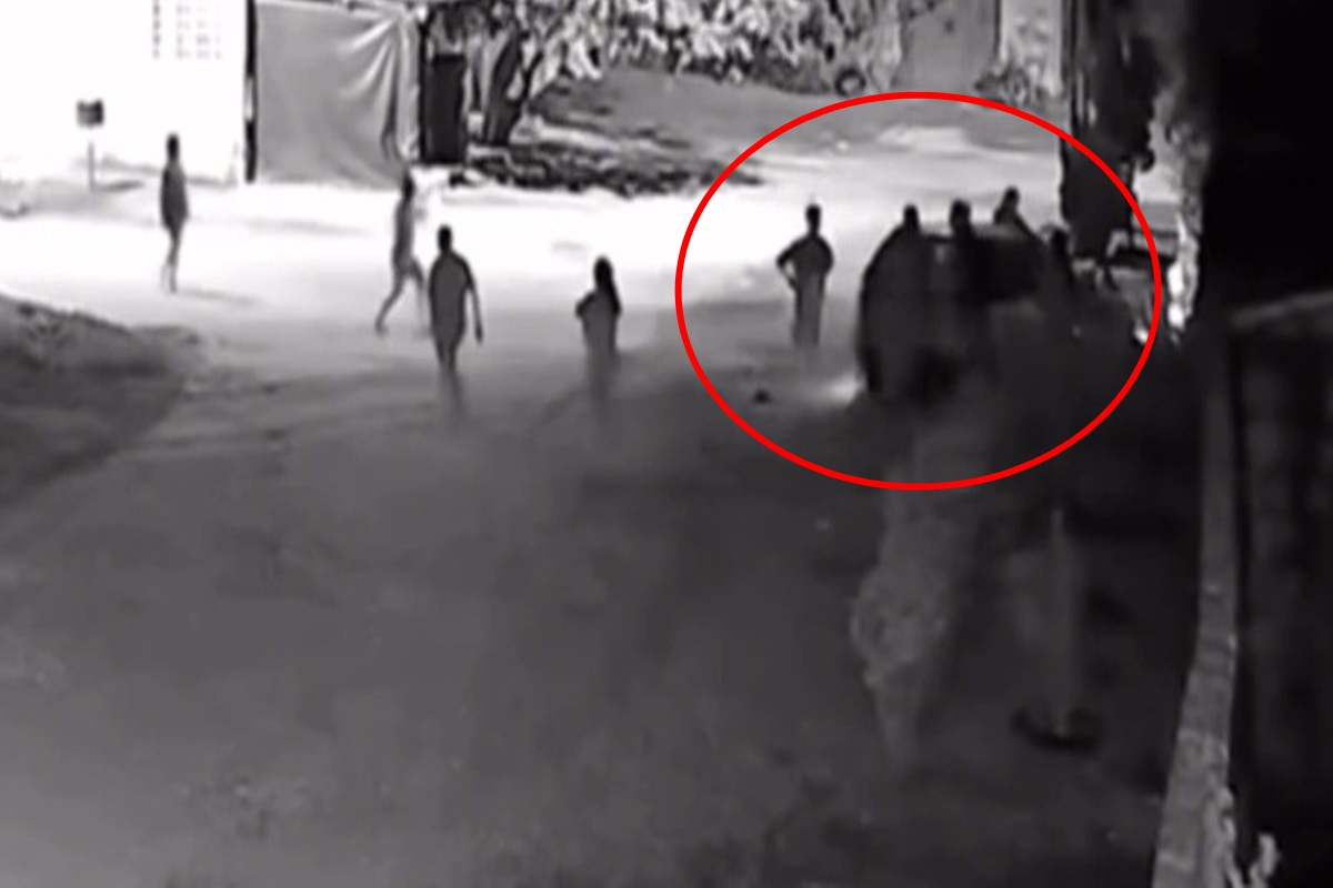 Uma câmera de segurança mostram o momento em que o motorista, baleado no tiroteio, perde o controle do veículo e atinge o portão de uma casa