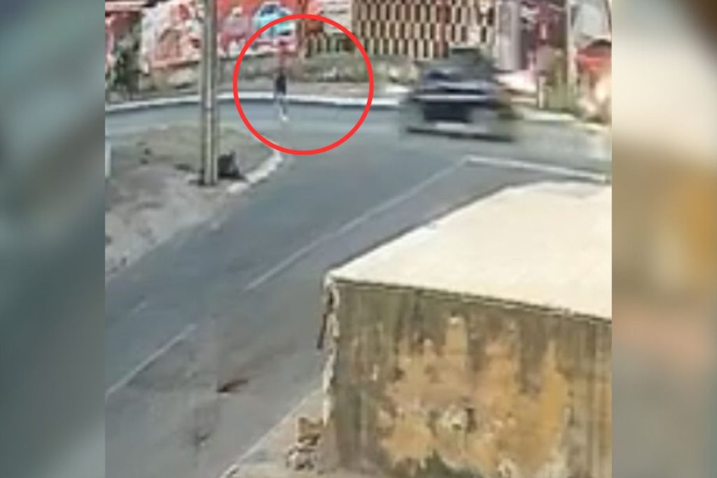 O acidente ocorreu nas proximidades da QSC 22, na Samdu Sul. Novas imagens, obtidas pelo Metrópoles, registraram o momento em que a vítima tenta atravessar a rua e é arremessada após ser atingida por um carro preto.