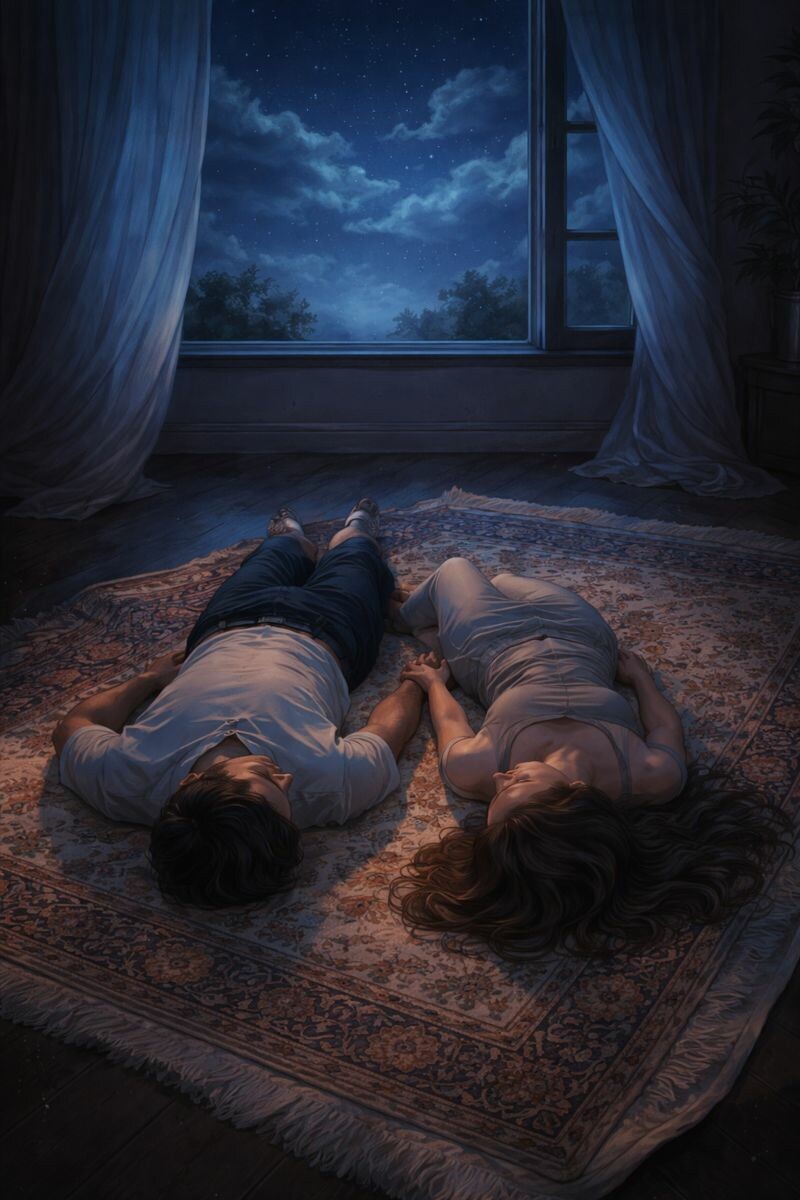 Em uma noite de muito calor, nos deitamos lado a lado com as costas nuas, sentindo o frescor da cerâmica branca que formava o piso de uma casa que não era nossa. A luz do quarto apagada, clima perfeito para dois vampiros ingênuos e saciados. Ficamos em um silêncio agradável por um tempo indefinido, contemplando pela abertura da janela a fugacidade das nuvens sobre a cidade e suas formações misteriosas por entre estrelas. O vento aparecia de vez em quando como uma visita rara e agradável. Foi assim que detivemos nossos olhos um no outro para compartilhar nossos pensamentos.