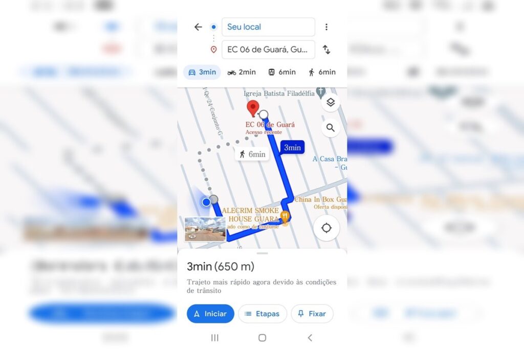 Trajeto selecionado tem uma distância de 3,2 km