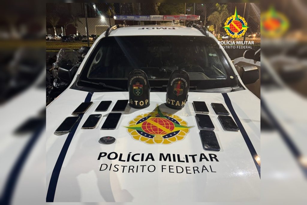 Pai, mãe e filho foram flagrados após uma das vítimas rastrear aparelho furtado; trio tentou fugir de carro pela área central de Brasília
