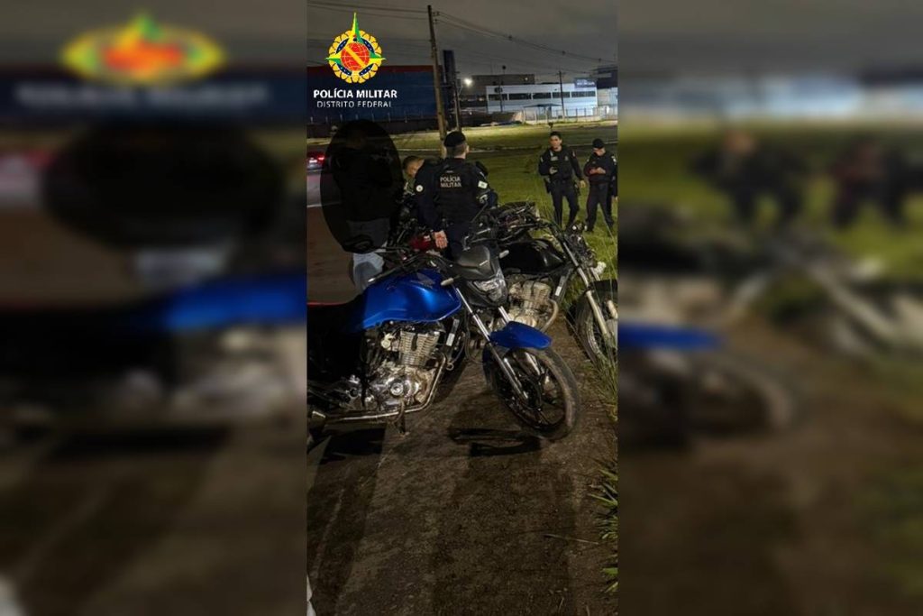 Participantes do racha trafegaram na contramão e tentaram furar bloqueio, colocando policiais e pedestres em risco; trio foi preso