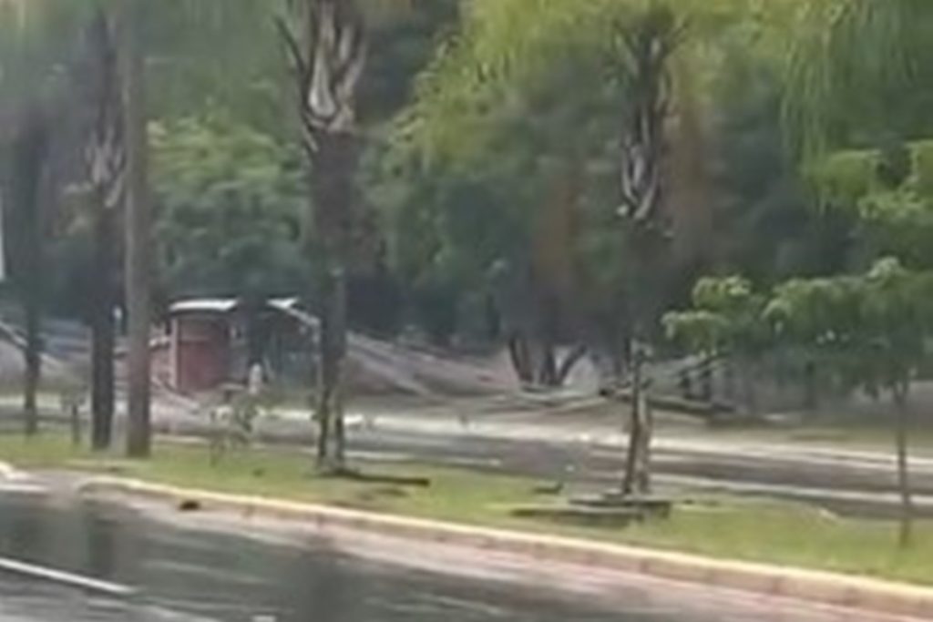 Poste fica suspenso sobre parada de ônibus após temporal no DF. Veja vídeo