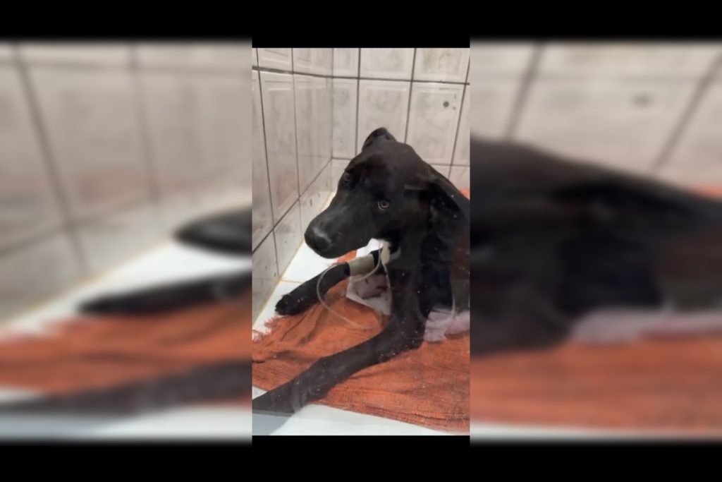 Batizado de Vini Jr., o cachorro foi resgatado em estado crítica por voluntários e precisou passar por cirurgia