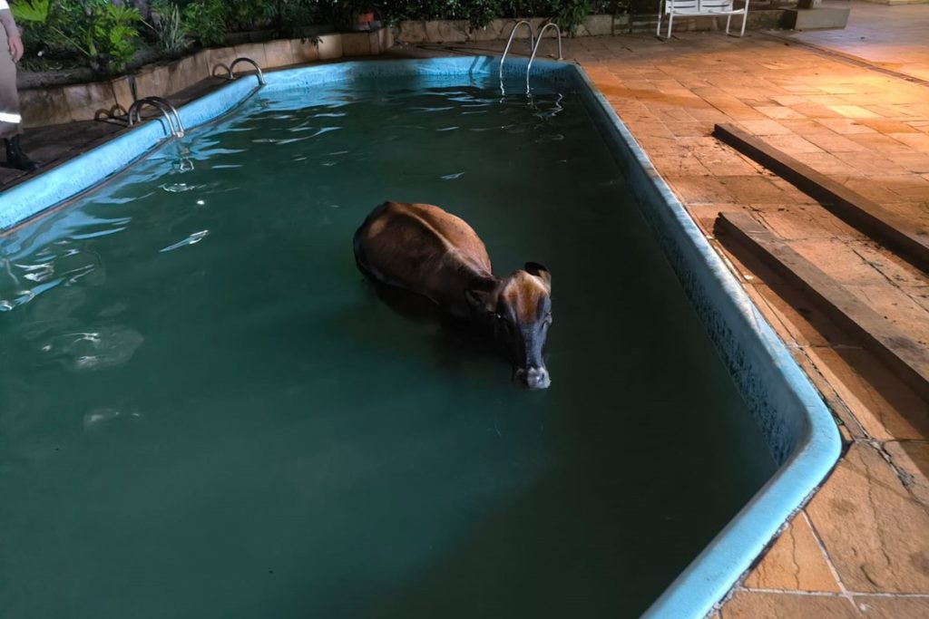 Resgate inusitado: vaca cai em piscina e é resgatada por bombeiros