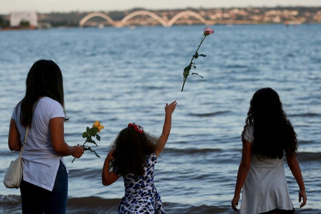 Pessoas fazem oferenda em Lago Paranoá