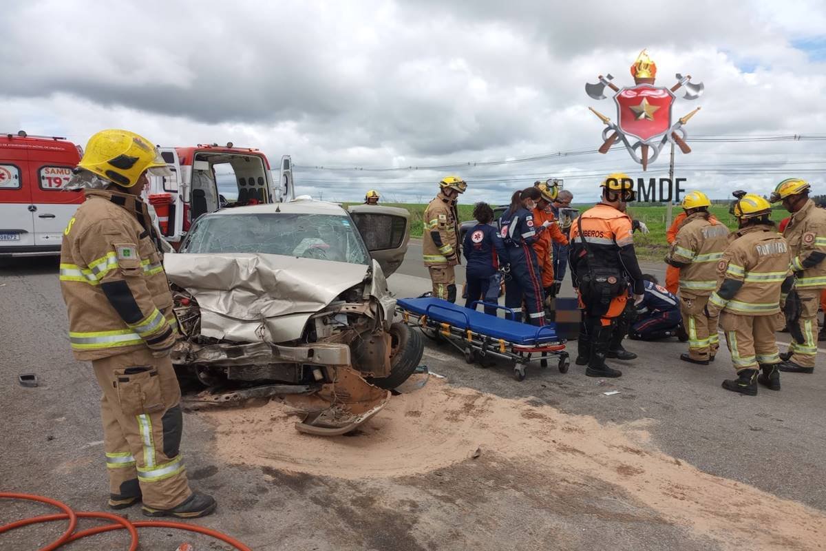 A colisão entre os três carros deixou três pessoas feridas, na altura do Km 10, no sentido Goiânia. Informações da PMDF dão conta de que o criminoso provocou o acidente ao dirigir na contramão.