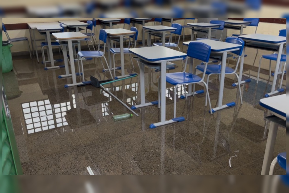Salas vazias e alagadas: veja como ficou escola do DF após temporal. Veja vídeo