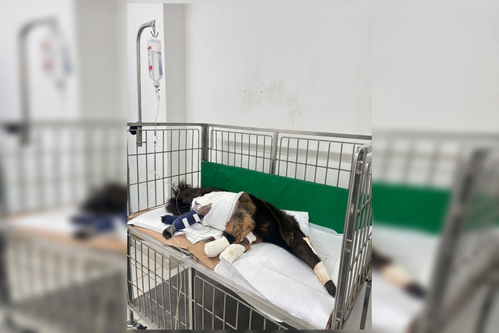 Tamanduá-bandeira resgatado no DF tem patas fraturadas e fará cirurgia