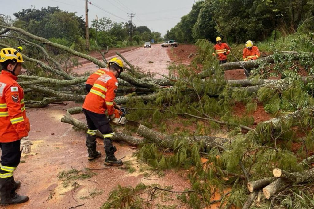 Uma árvore caiu no portão de uma casa e outra ficou em meio a uma via pública. Bombeiros precisaram de moto-serra para retirar os troncos