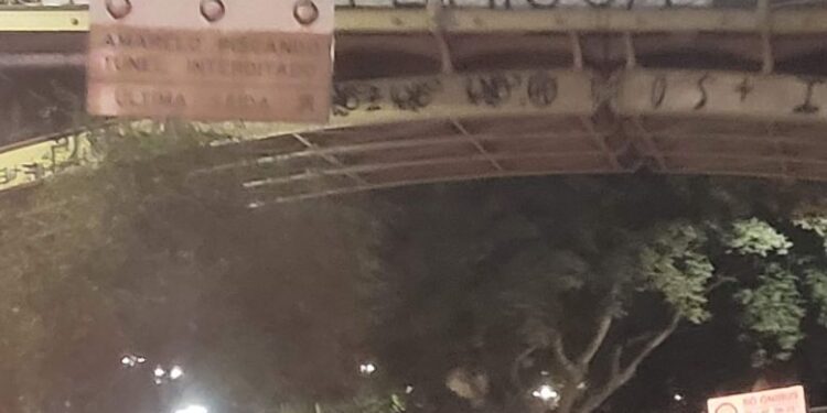 Faixa de protesto instalada em viaduto na Avenida Tiradentes, em São Paulo.  Rafael Serra/CNN