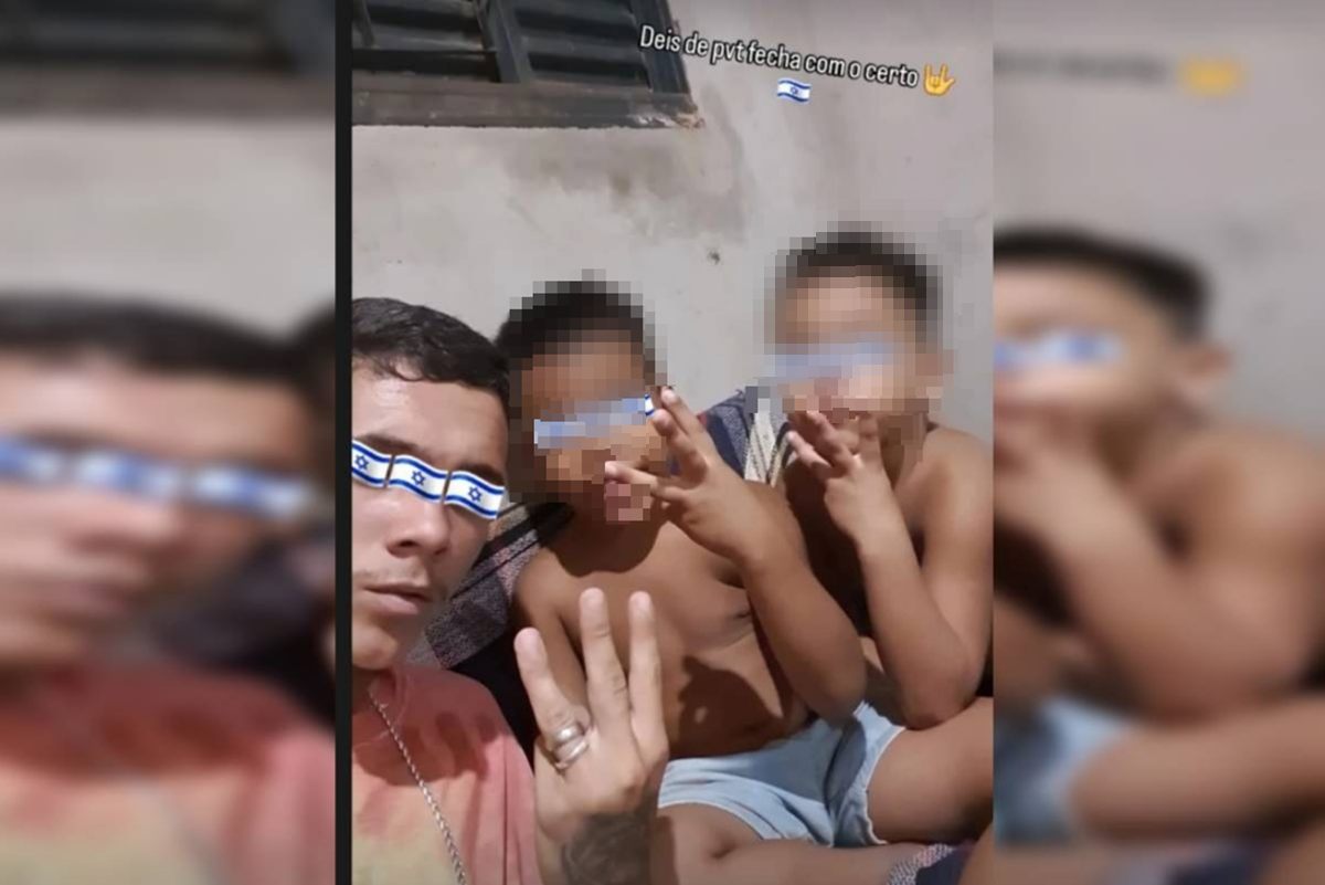 O suspeito ainda cobriu os olhos das crianças com a imagem da bandeira contendo a Estrela de Davi, símbolo do Terceiro Comando Puro (TCP)