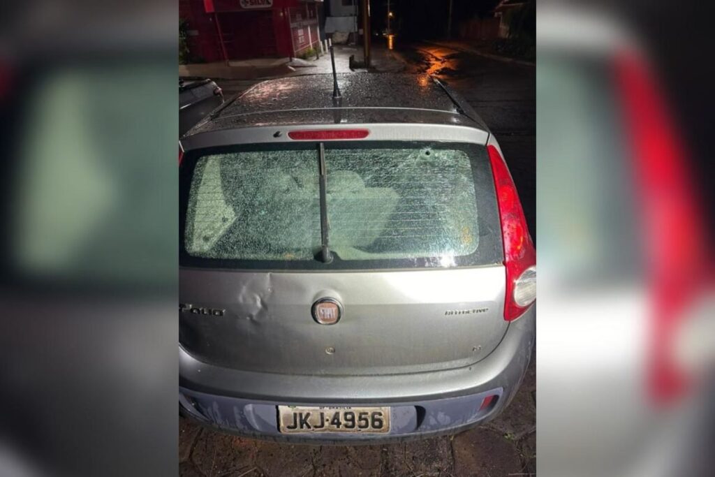 Vidro traseiro do veículo ficou com marca de bala e quebrado