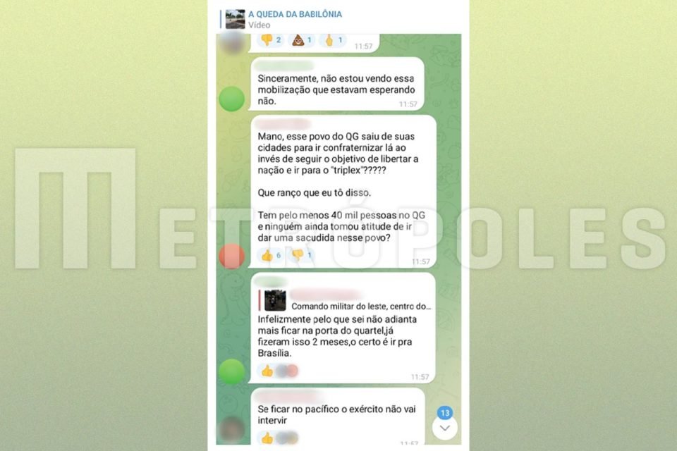 Ameaças contra a imprensa também eram constantes. Em uma das publicações de Ana Priscila, em 4 de janeiro, ela compartilhou uma notícia do Metrópoles expondo a comunicação golpista no grupo e escreveu: “Esses filhos da put* acham que me atacam com minhas próprias palavras”.
