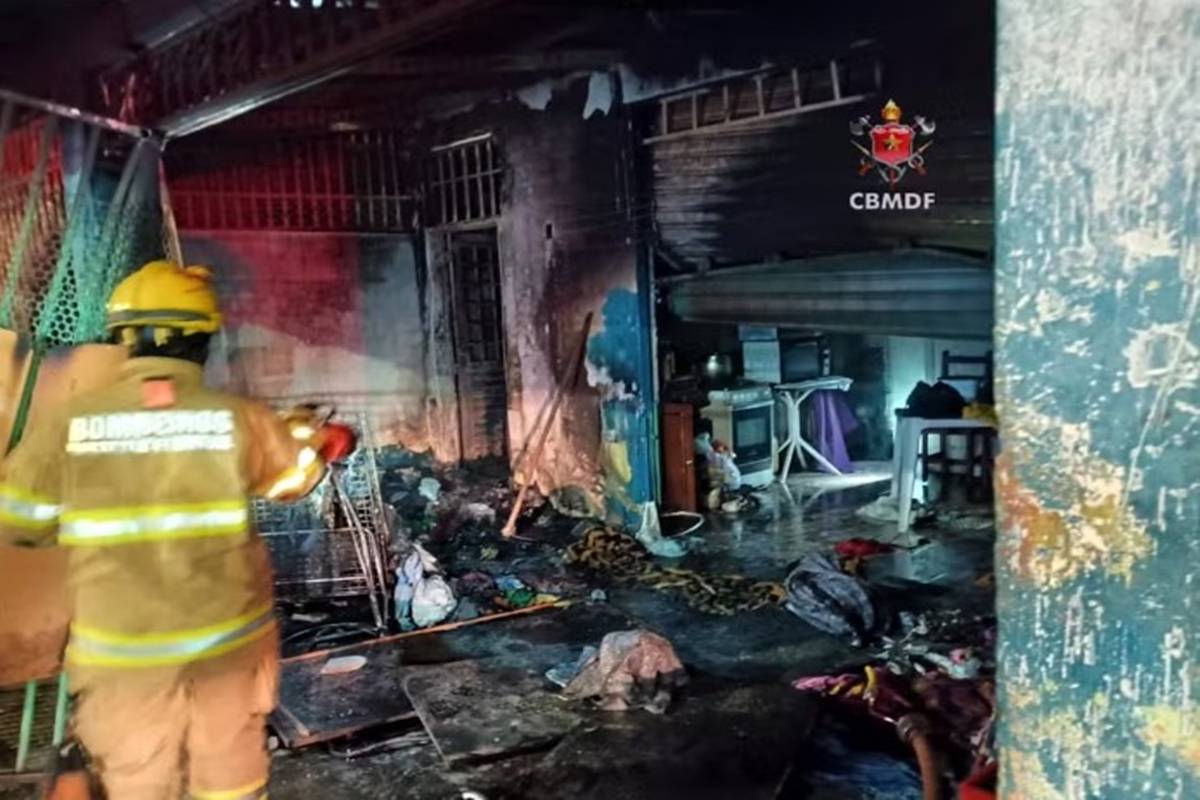 • Os dois filhos da mulher estavam dentro do imóvel no momento em que as chamas começaram.